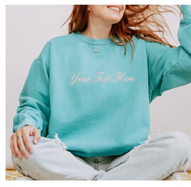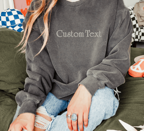 Custom embroidered text on sweatshirts and hoodies with names and special dates, perfect for making everyday items truly yours.